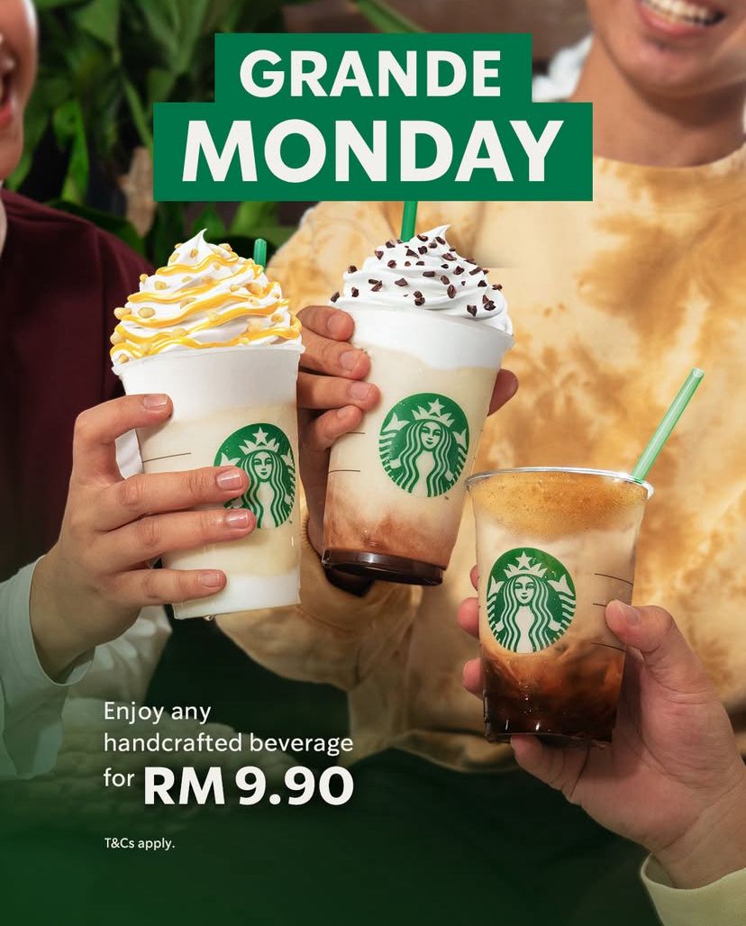 Enjoy Grande Monday- where any Grande-sized handcrafted beverage is only RM9.90 !